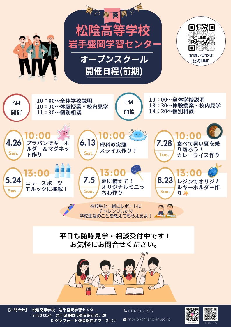 また、学校に関するご相談はLINEからお問い合わせいただけます。