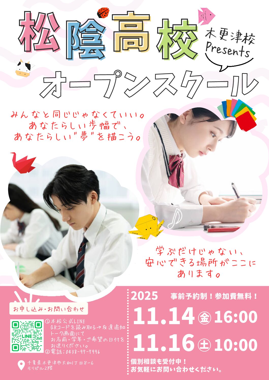 また、学校に関するご相談はLINEからお問い合わせいただけます。