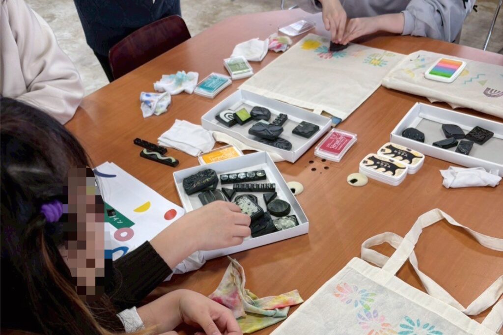 様々なスタンプを自由に押して、オリジナルのトートバッグを作成。
